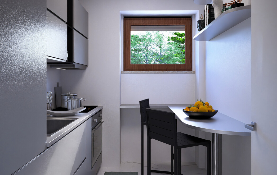 La cucina abitabile, accogliente e ben organizzata, è pensata per la convivialità quotidiana.