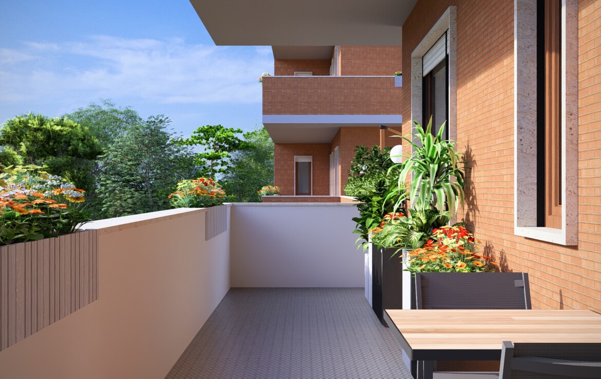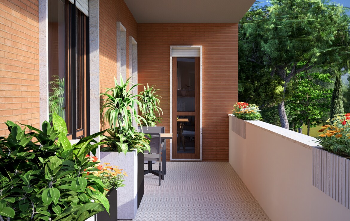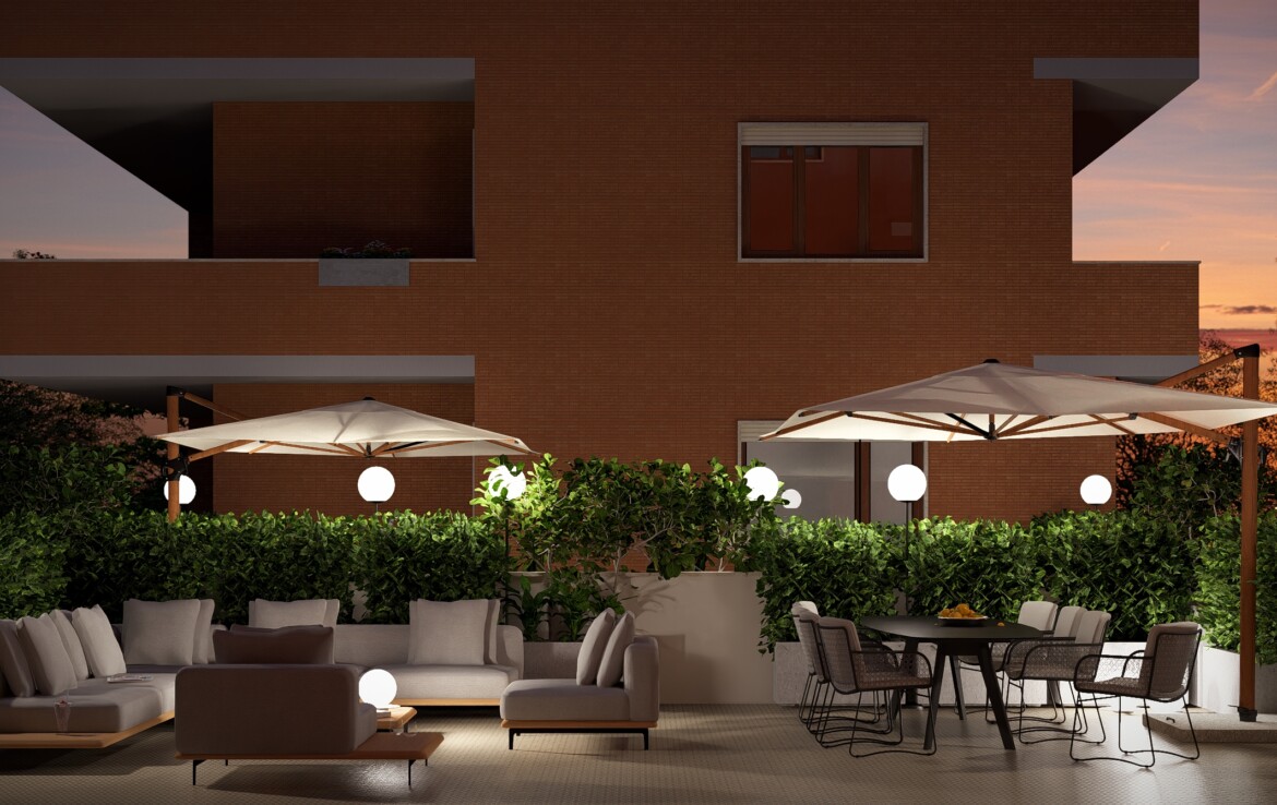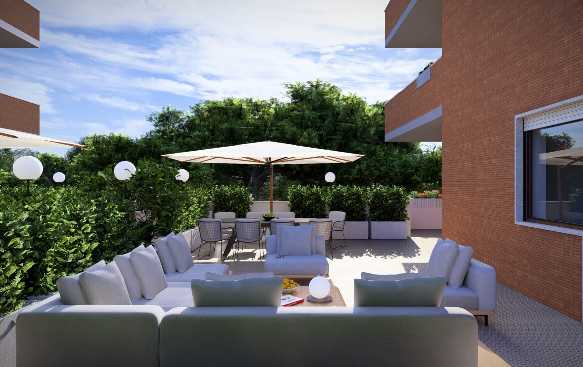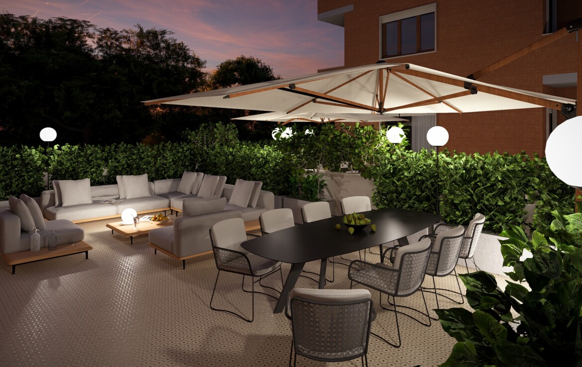 L’appartamento è caratterizzato da una distribuzione equilibrata degli spazi che valorizza la continuità tra interno ed esterno. Il soggiorno si apre su un balcone angolare di 20 mq che conduce a un grande terrazzo di 50 mq: uno spazio perfetto da vivere in ogni stagione.