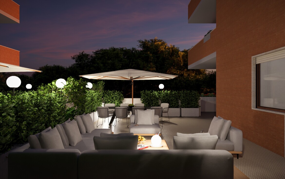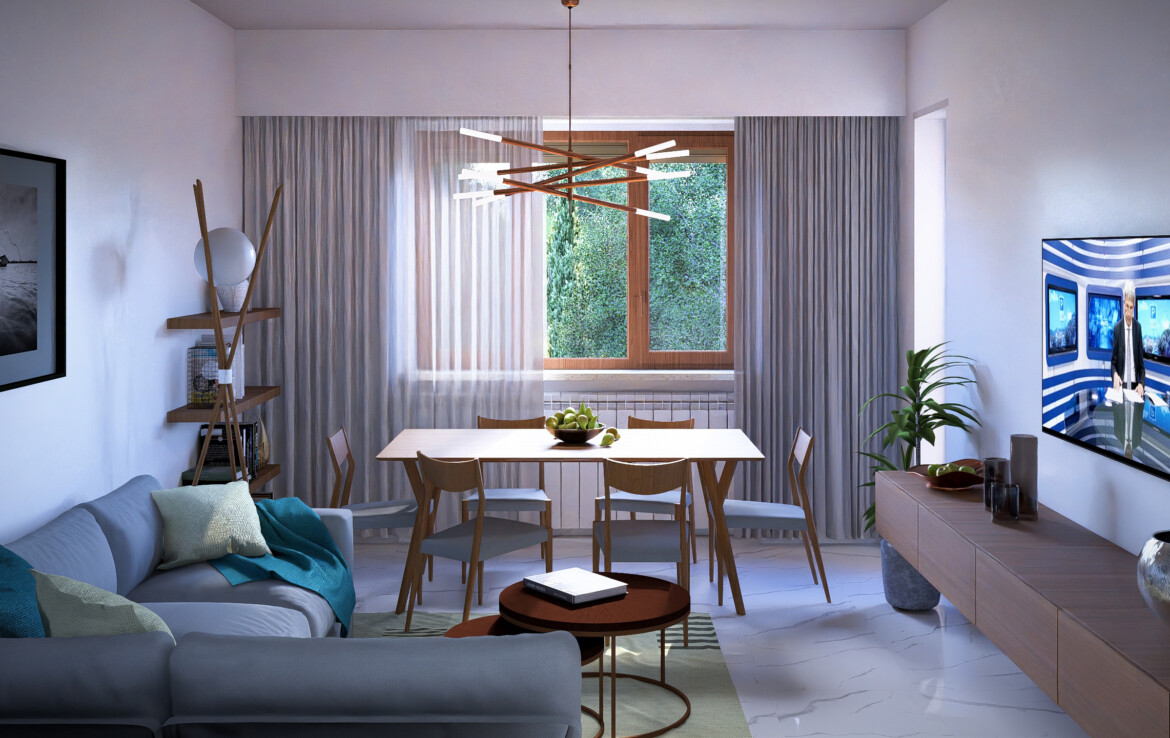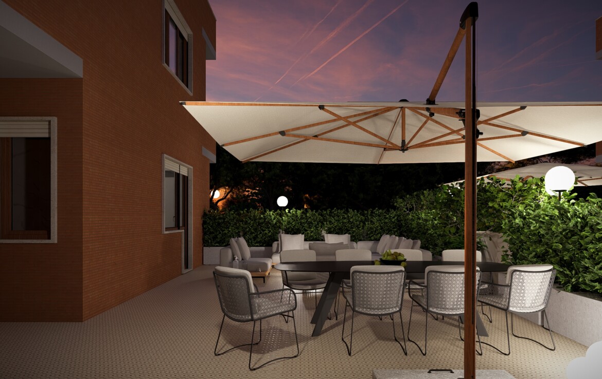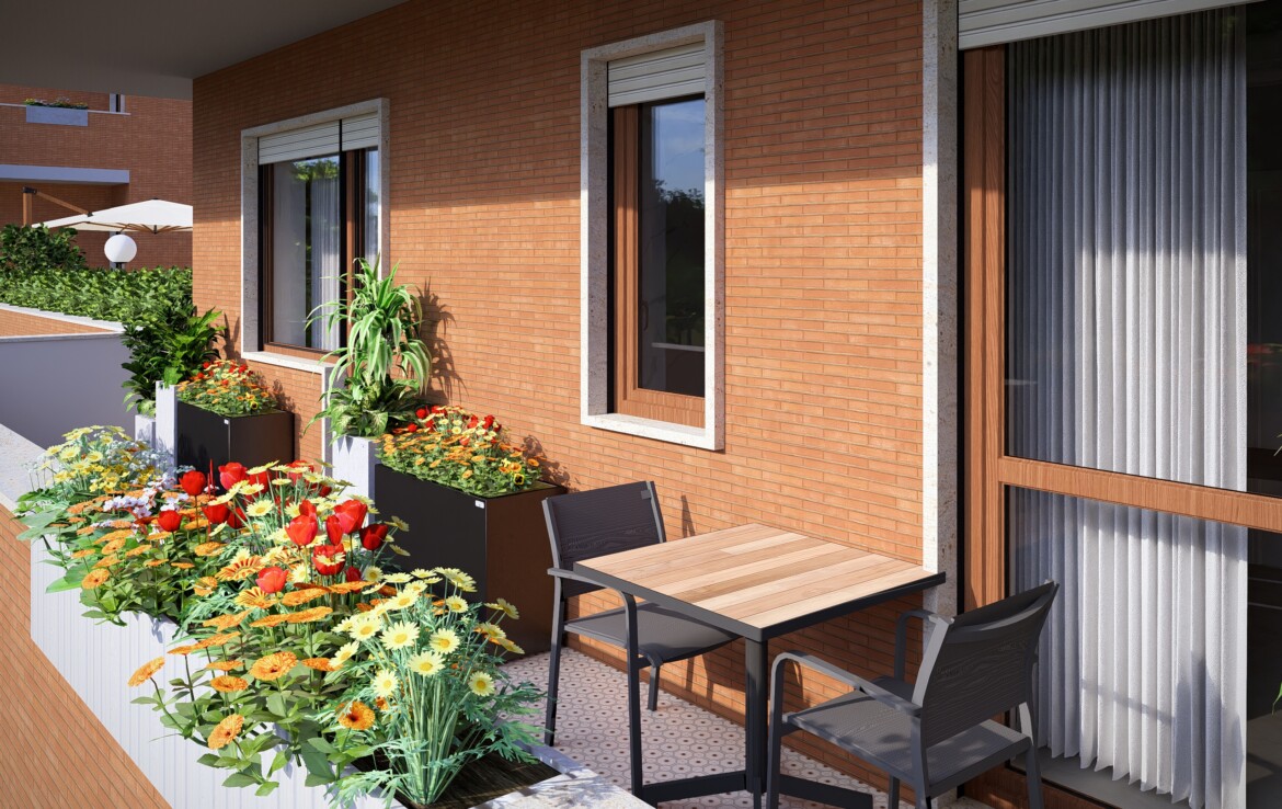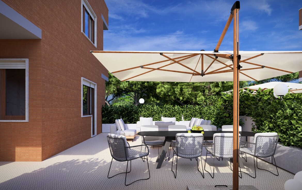 L’appartamento è caratterizzato da una distribuzione equilibrata degli spazi che valorizza la continuità tra interno ed esterno. Il soggiorno si apre su un balcone angolare di 20 mq che conduce a un grande terrazzo di 50 mq: uno spazio perfetto da vivere in ogni stagione.