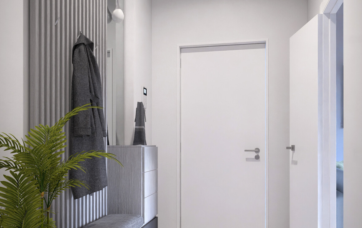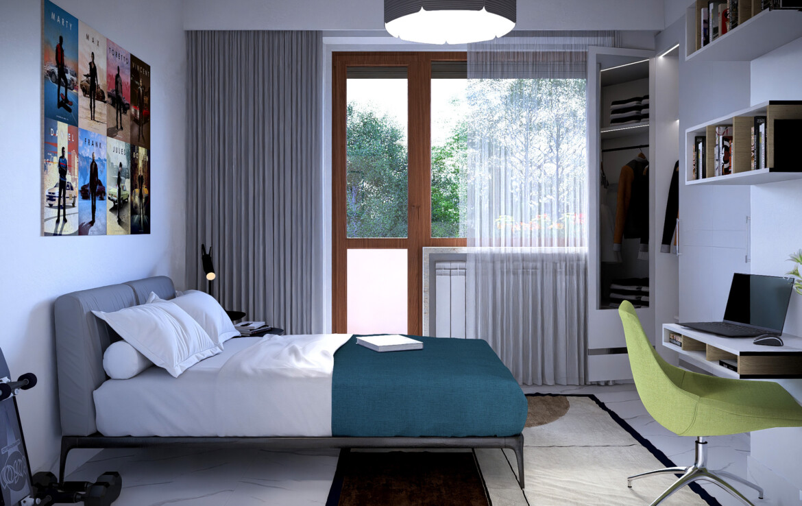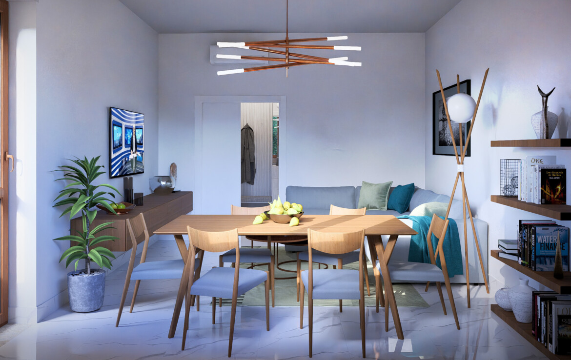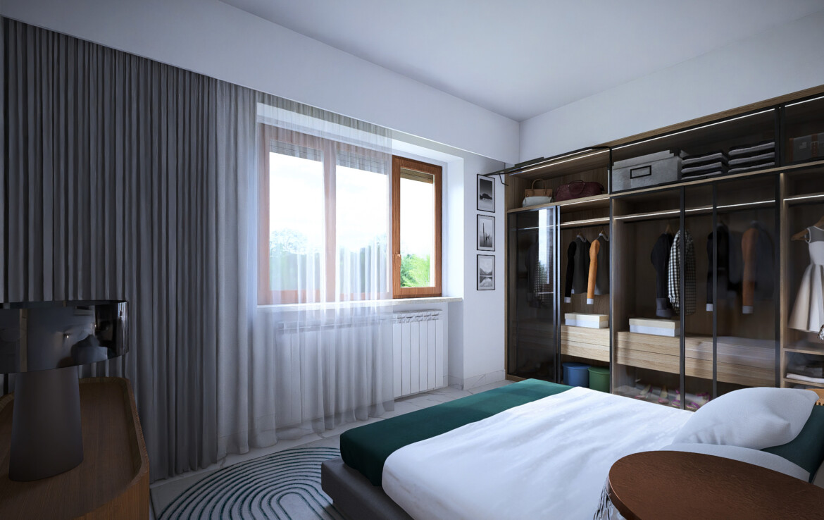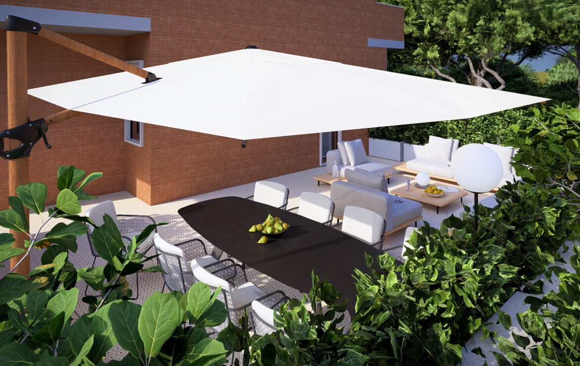 L’appartamento è caratterizzato da una distribuzione equilibrata degli spazi che valorizza la continuità tra interno ed esterno. Il soggiorno si apre su un balcone angolare di 20 mq che conduce a un grande terrazzo di 50 mq: uno spazio perfetto da vivere in ogni stagione.